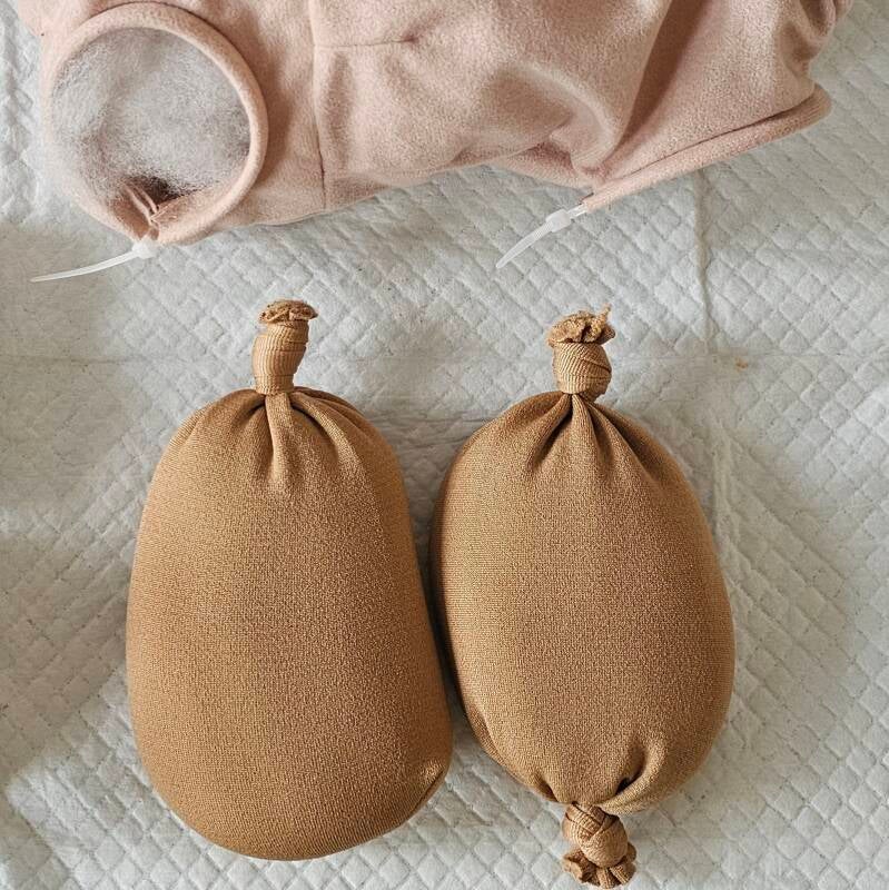 Deze komen in het achterwerk van de kit, zodat de baby een mooi zwaar kontje krijgt – dat voel je meteen als je haar vasthoudt, en het geeft een extra vleugje realisme.