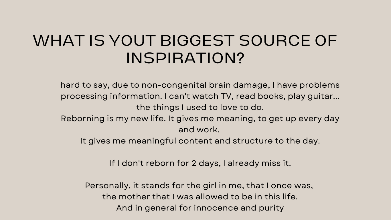 When I happened to hear about lifelike baby dolls and how they are made, I thought; hey, that's just like in photoshop, but in real life. I tried it out on an old baby doll to see if it would actually turn out as I thought, and then I went to buy my first things at the fair in 's Hertogenbosch. It gives me structure and daily activities and a lot of satisfaction